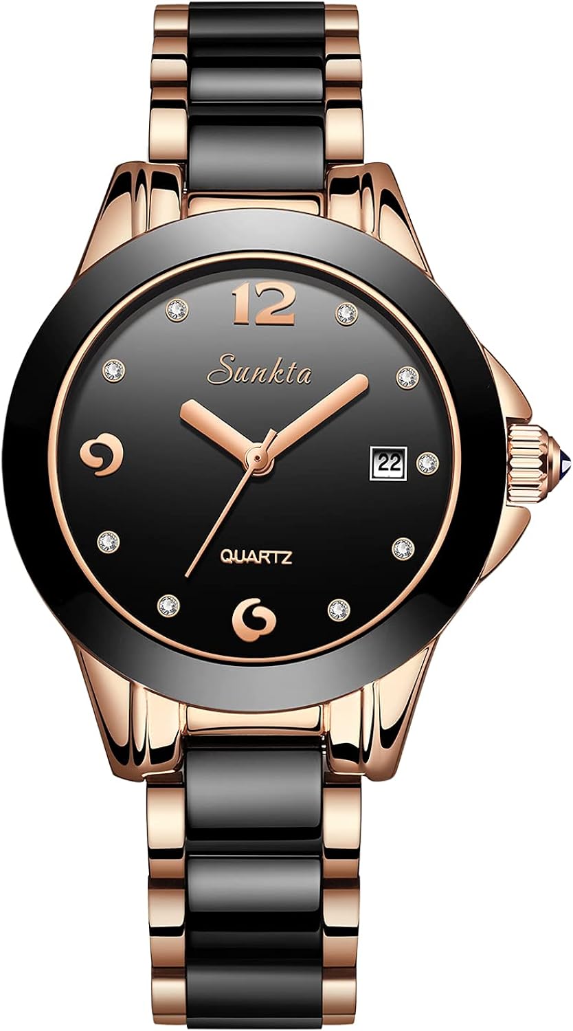 Sunkta ceramic rhinestone quartz blue waterproof Bracelet Watch -003 image
