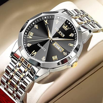 Product details of OLEVS 9931 Silver And Golden Two-tone Stainless Steel Analog Wrist Watch For Couple - Black & Silver & Golden