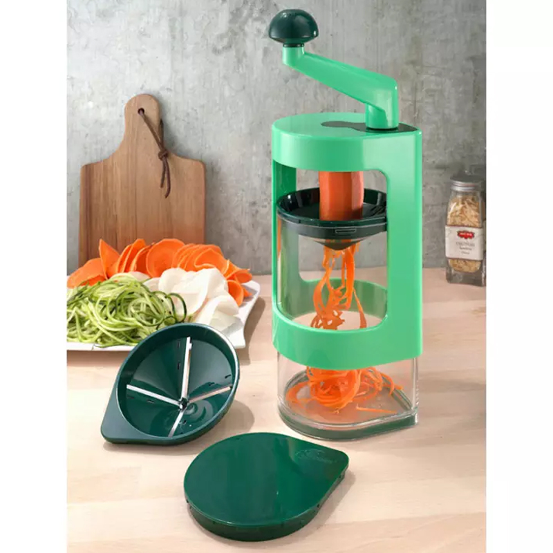 With it you can cut more fruits, vegetables, potatoes, carrots, cucumbers in less time, it will save you a lot of time. There are 2 cutting inserts so that the components can be easily cut to the desired shape.